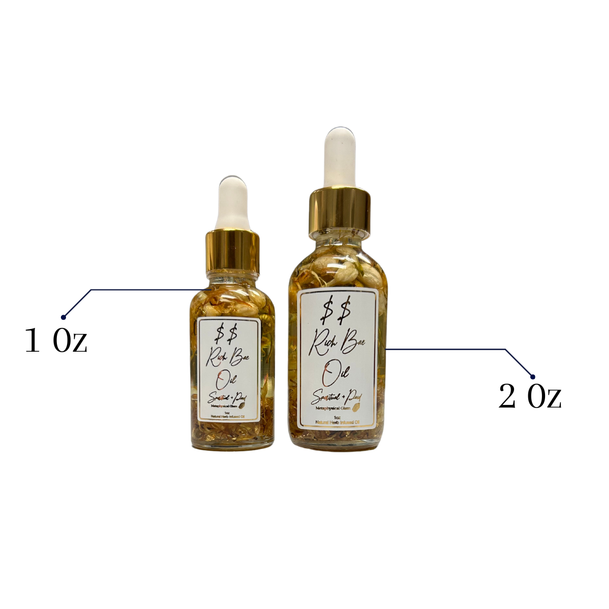 Unlock the gates of prosperity with our Rich Bae Prosperity Oil, carefully curated to magnify your abundance and welcome financial blessings into your life. Also known as Abundance Oil, this mystical elixir can be seamlessly incorporated into your rituals or spells, inviting a flow of prosperity in the form of cash, promotions, gifts, new opportunities, and more. Available in 1oz and 2oz sizes, this enchanted oil is the key to a wealthier, more abundant reality.