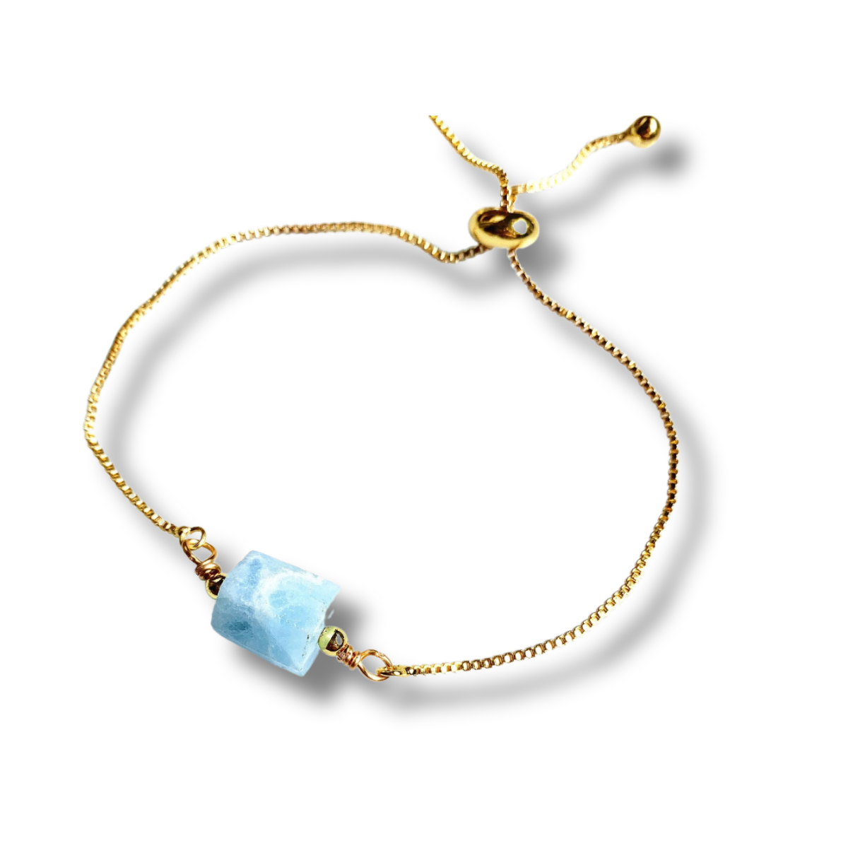 Wearing an Aquamarine Gold Adjustable Bracelet can be a source of emotional healing and inner peace.