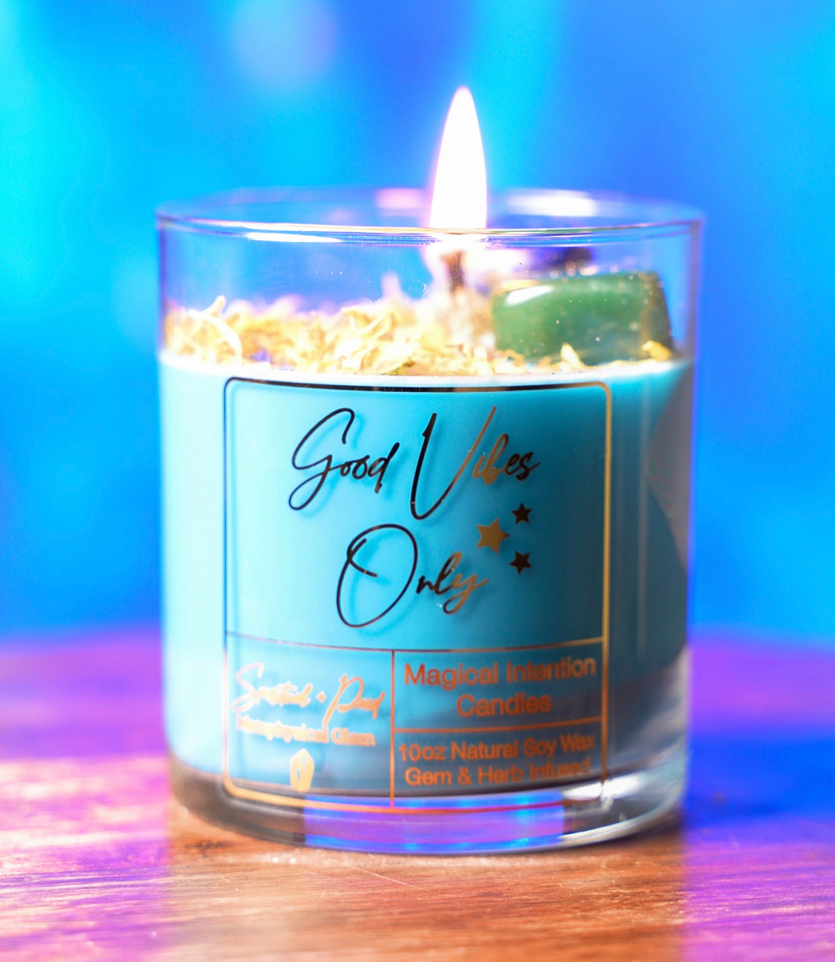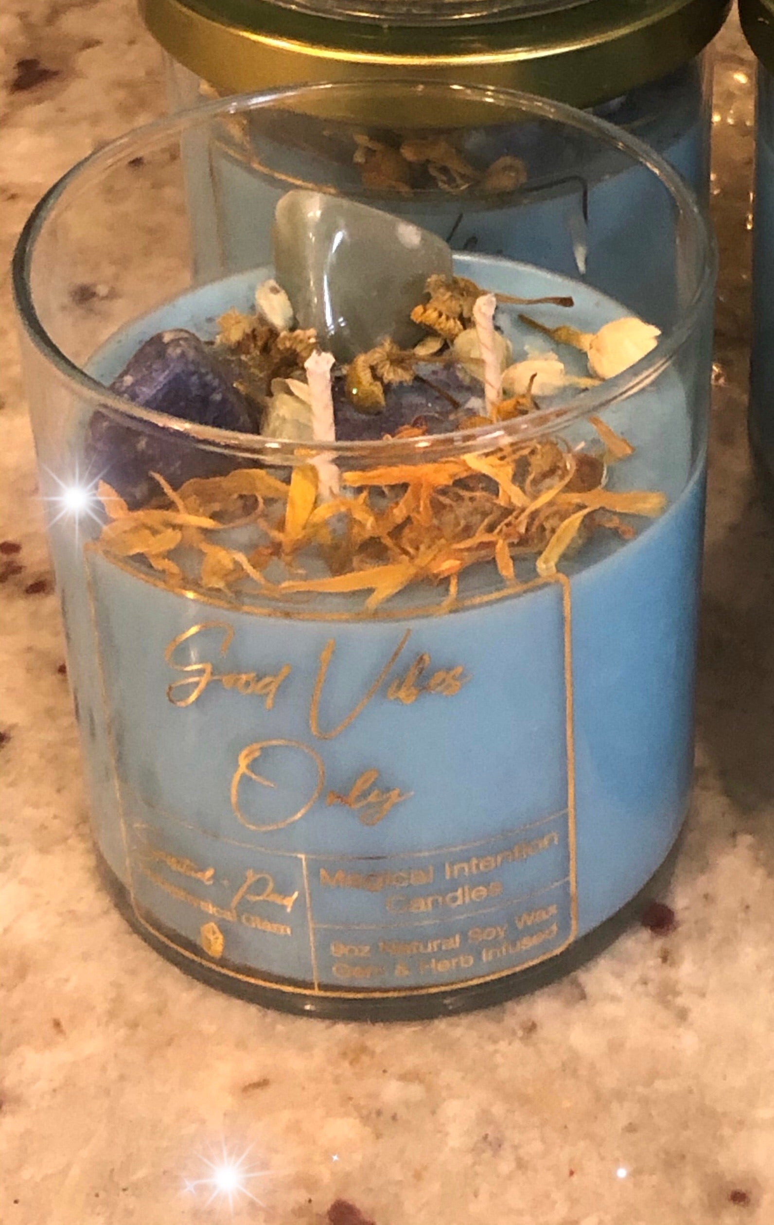 This candle is charged with the intention of clearing out negative energy in your home or in your mental space. NO BAD VIBES are left when you burn our good vibes only candle.