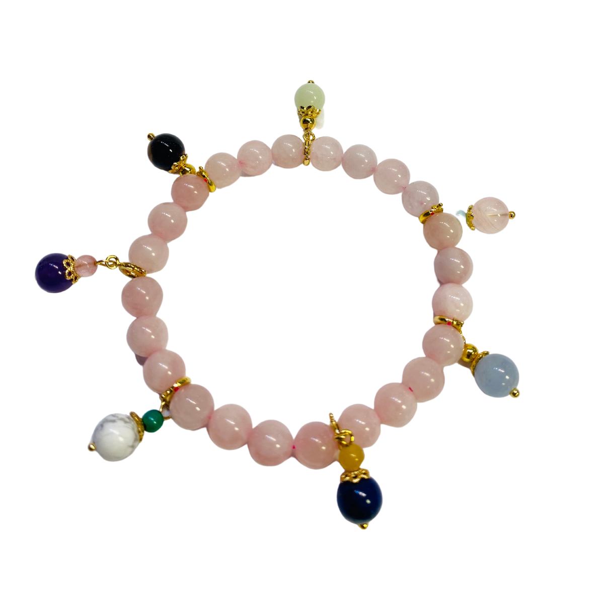 Rose Quartz Infinity Bracelet with Aquamarine, Jade, Howlite, Lapis Lazuli, Tiger Eye, and Amethyst